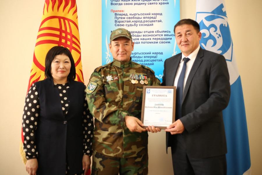 Глава района Жамалбек Ырсалиев искренне поблагодарил за исполнение воинского долга по защите территориальной целостности Кыргызской Республики.