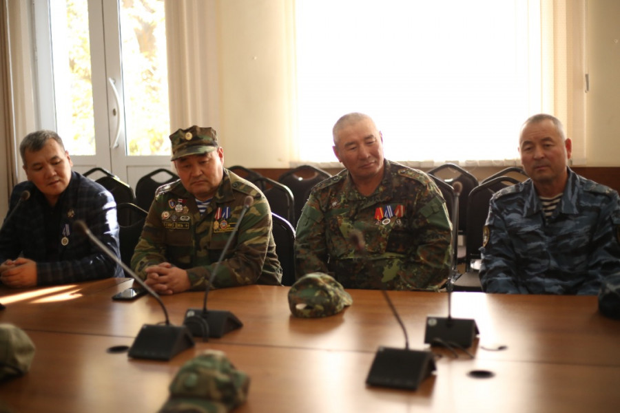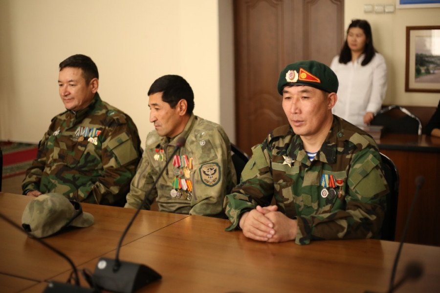 Сегодня в зале заседаний Первомайского акимиата прошло награждение военных, участвовавших в Баткенских событиях 1999-2000 годах.