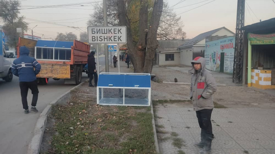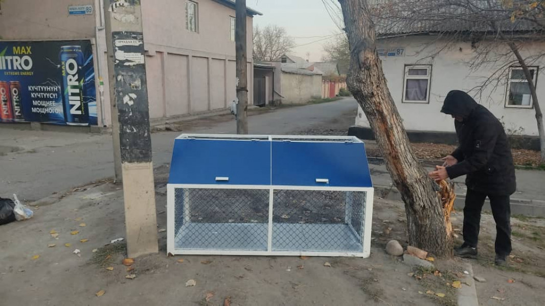 Муниципальное предприятие “Тазалык” на крупных городских улицах установило сеточные мусоросборники.