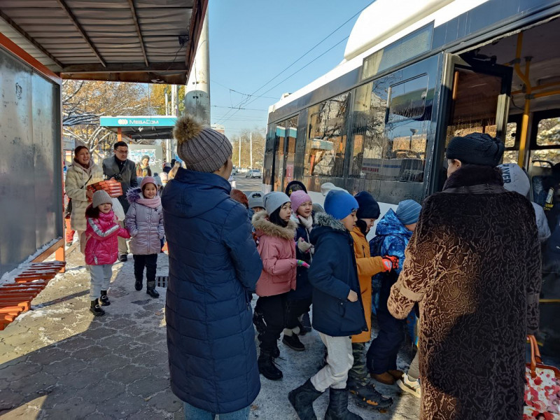 Бишкекское троллейбусное управление совместно с УК авторской физико-математической школой-лицеем №61 Якира Е.Б организовали для учеников второго класса поездку в экскурсионном троллейбусе.