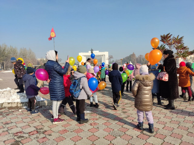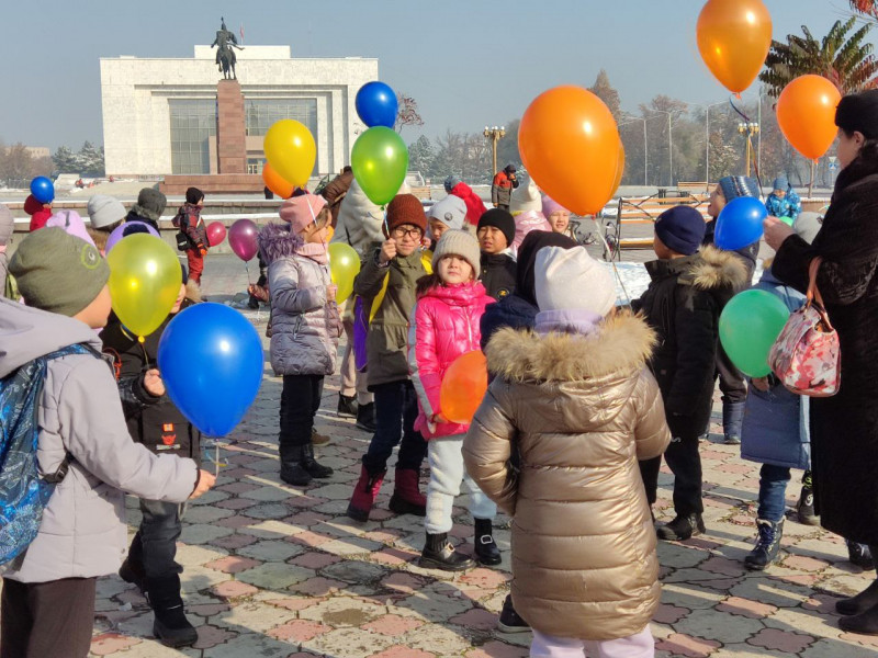 По завершению экскурсии дети посетили центральную площадь Ала-Тоо, где поделились своими впечатлениями о поездке в троллейбусе и запустили воздушные шары в честь процветания нашего славного города Бишкек.