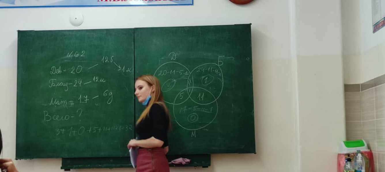 А учитель УВК ШГ №70 Эсенбаева Гульнара Асановна – победитель городского конкурса «Сердце отдаю детям-2019» провела мастер-класс, где научила методике решения задач по математике в 5 классах (по учебнику авт. С. К. Кыдыралиев, А. Б. Урдалетова, Г. М. Дайырбекова) «Число элементов множества, определённого по двум признакам».