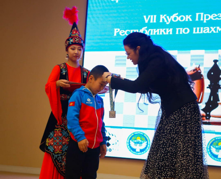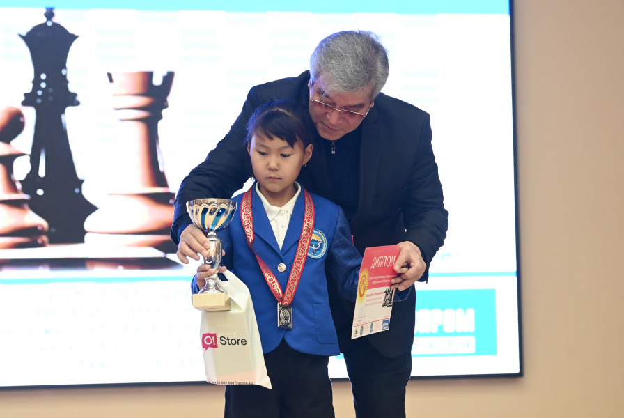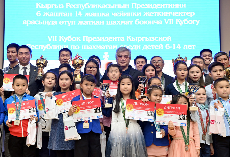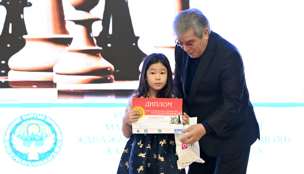 Государственный секретарь Кыргызской Республики Суйунбек Касмамбетов сегодня, 14 ноября, принял участие в церемонии закрытия турнира на Кубок Президента страны по шахматам среди детей.