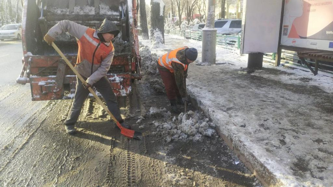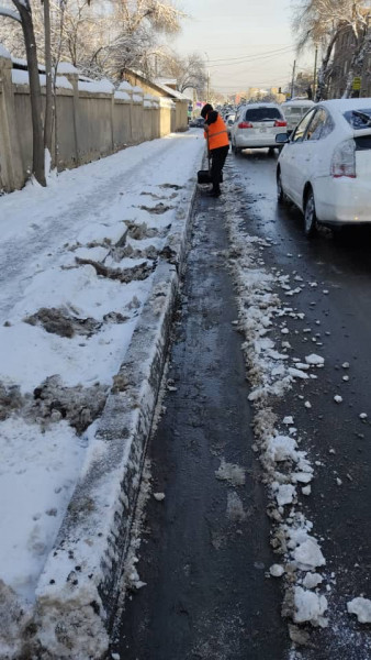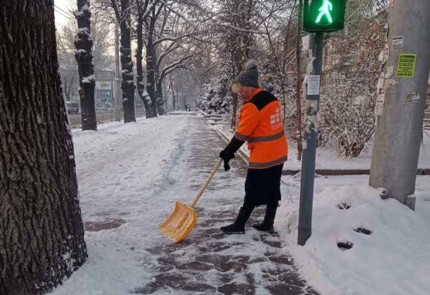 Муниципальное предприятие "Тазалык" продолжает уборку и очистку городских улиц от снега.