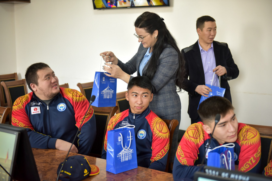 Айбек Джунушалиев сказал напутственные слова спортсменам, пожелал новых достижений и вручил небольшие памятные подарки.