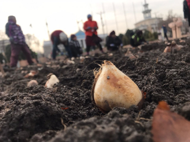На столичных клумбах началась посадка луковиц тюльпанов.