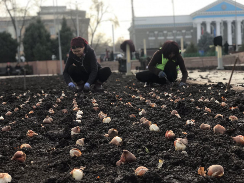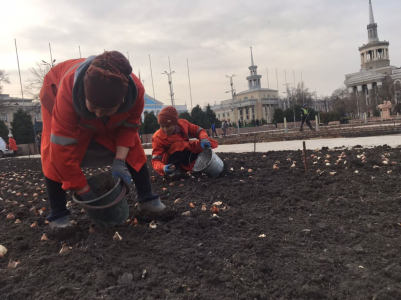 Теперь весной горожане смогут насладиться красотой тюльпанов на Аллее Молодежи, на улице Пушкина у памятника Курмаржан Датки, сквере Театральном и на улицах Фрунзе, Ибраимова, на пересечении улиц Ахунбаева-7 апреля .