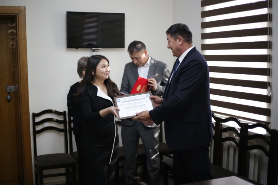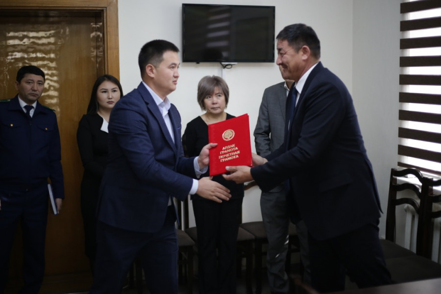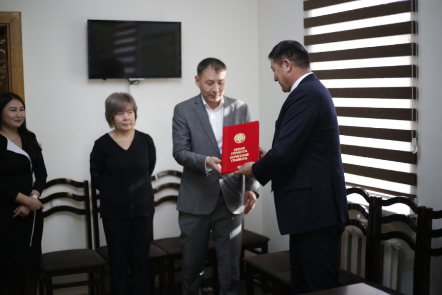 Глава Октябрьского района Мирлан Эшкожоев за добросовестный и плодотворный труд и наградил сотрудников Почетными грамотами администрации Октябрьского района: