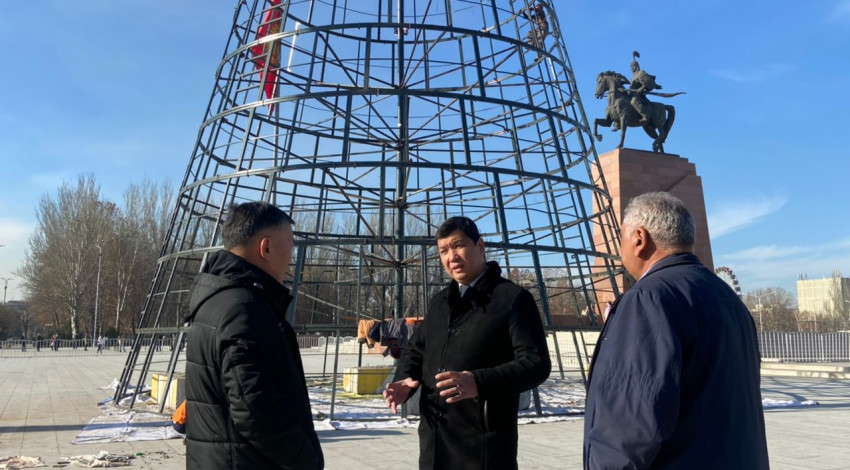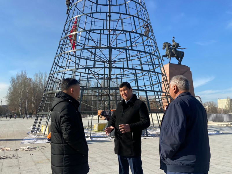 Мэр столицы Айбек Джунушалиев ознакомился с работой сотрудников муниципального предприятия «Тазалык», которые зайдествованы в подготовке центральной площади «Ала-Тоо» к новогодним праздникам.