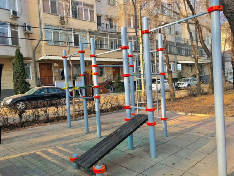 Мини-зона отдыха расположена рядом с жилыми домами и общественными заведениями. Благодаря удобной локации горожане могут проводить досуг рядом с домом, а детишки здорово порезвиться на игровой площадке.