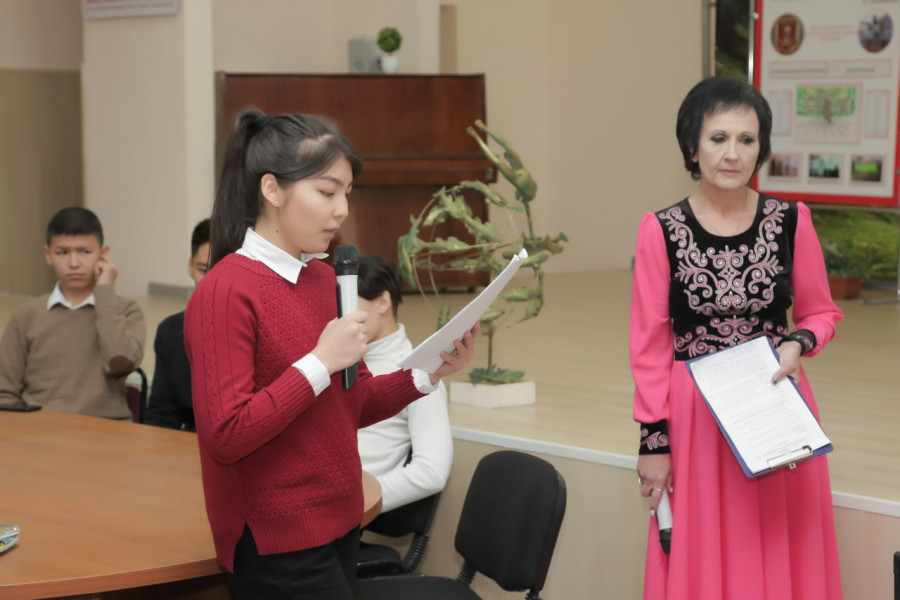 Ребята состязались в телеигре "Лучший знаток произведения Ч. Айтматова "Тавро Кассандры". По итогам игры победила дружба.