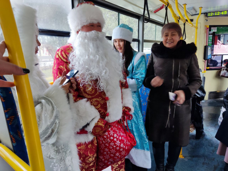 Первой ласточкой стал троллейбус одиннадцатого маршрута. На специальном рейсе горожане смогли окунуться в сказочную атмосферу, которая сопровождалась танцами, песнями и конкурсами. Дети с радостью рассказывали стихотворения и получали сладкие презенты, а взрослые горожане делали памятные снимки с необычными пассажирами.
