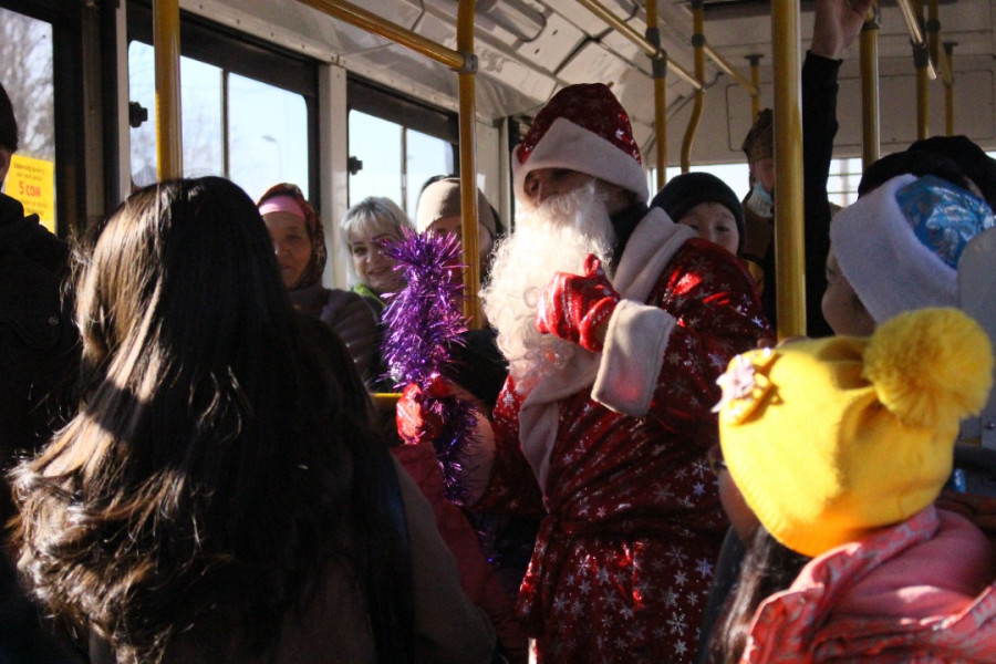 21 декабря пассажиры троллейбусного маршрута №14 стали свидетелями новогоднего театрализованного представления.