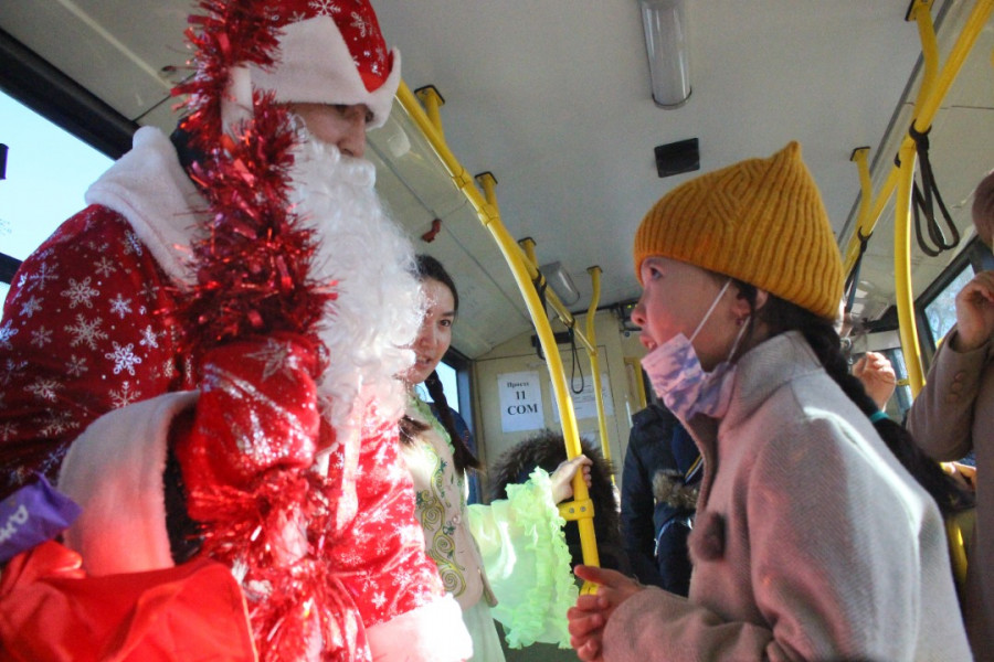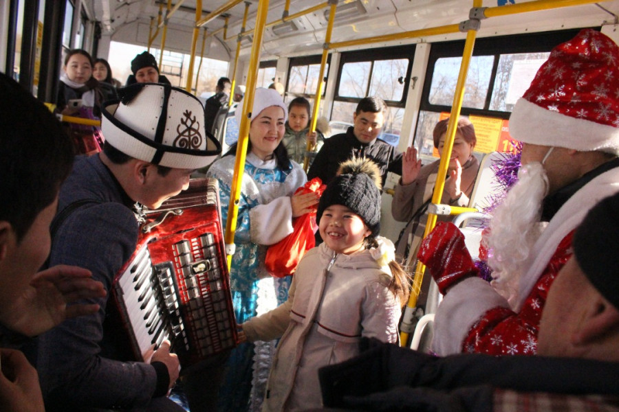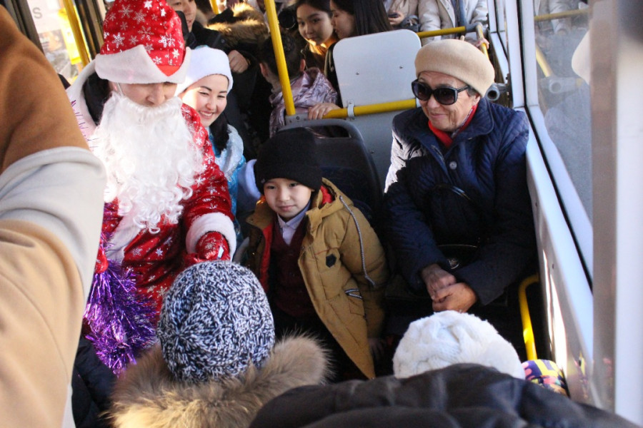 Отметим, такую акцию запустил муниципалитет для создания новогоднего настроения у жителей города и гостей столицы. Праздничный транспорт с главным новогодним волшебником и его помощницей будет курсировать до 31 декабря.
