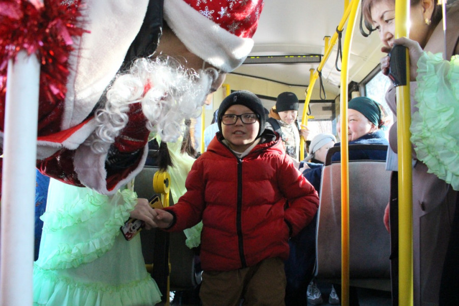 С 25 декабря новогодние персонажи будут поднимать настроение и пассажирам автобусов.