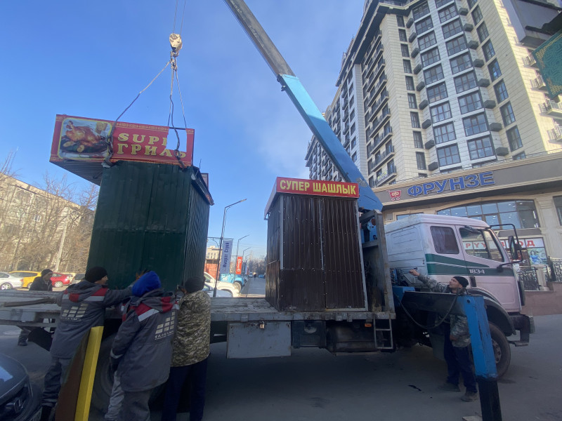 Управление землепользования и строительства мэрии города Бишкек продолжает борьбу с самовольно установленными объектами.