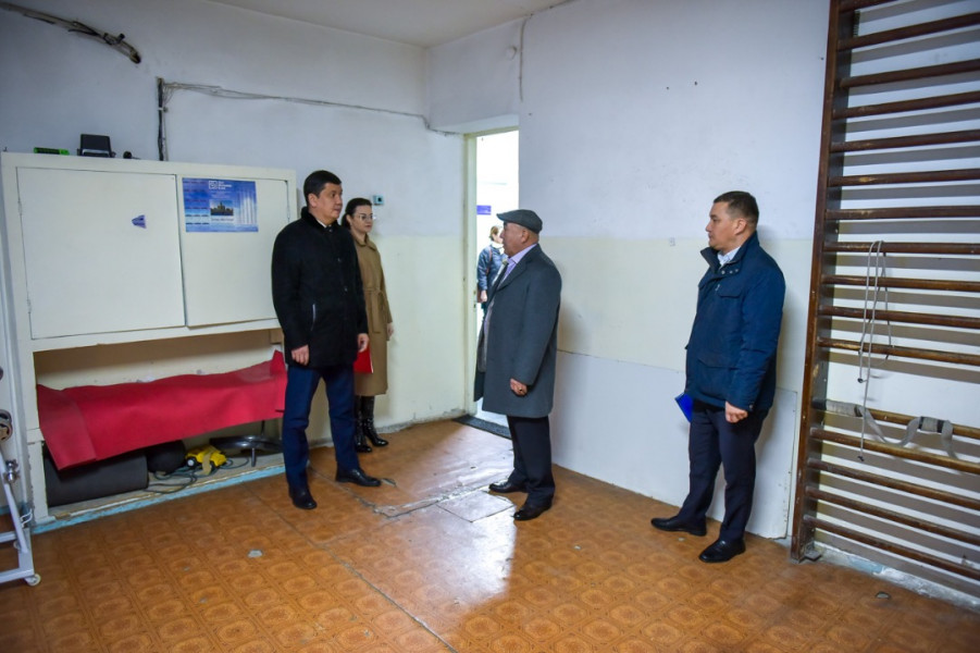 Градоначальник ознакомился с состоянием помещений, где размещены спортивные школы, по адресу: 4 мкр., дом 19/1 (СДЮШОР), ул.Карасаева, 10 (спортивный зал ЛОВЗ).