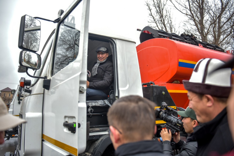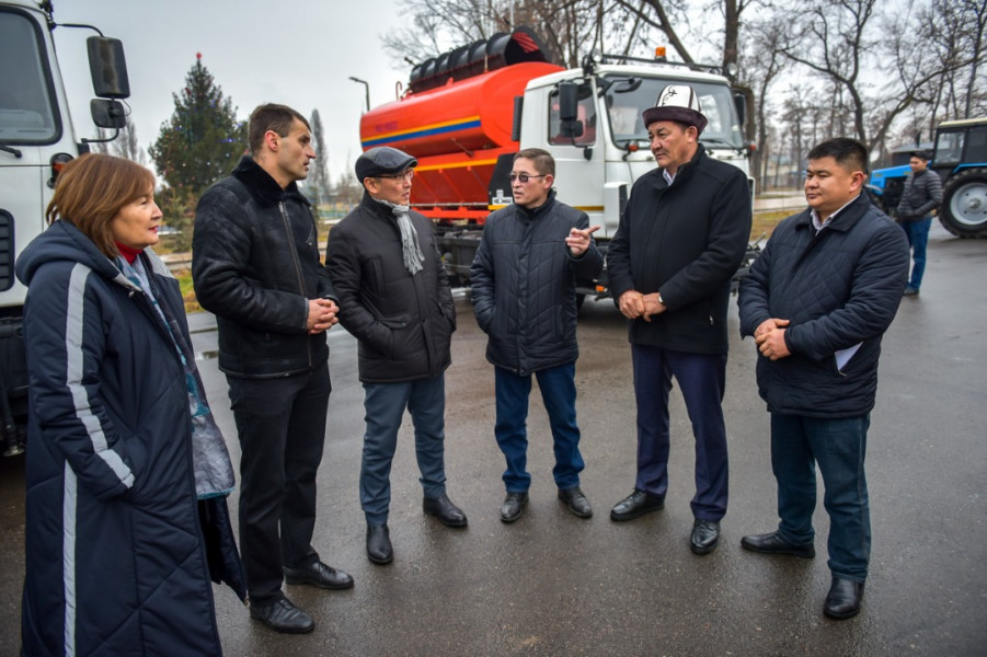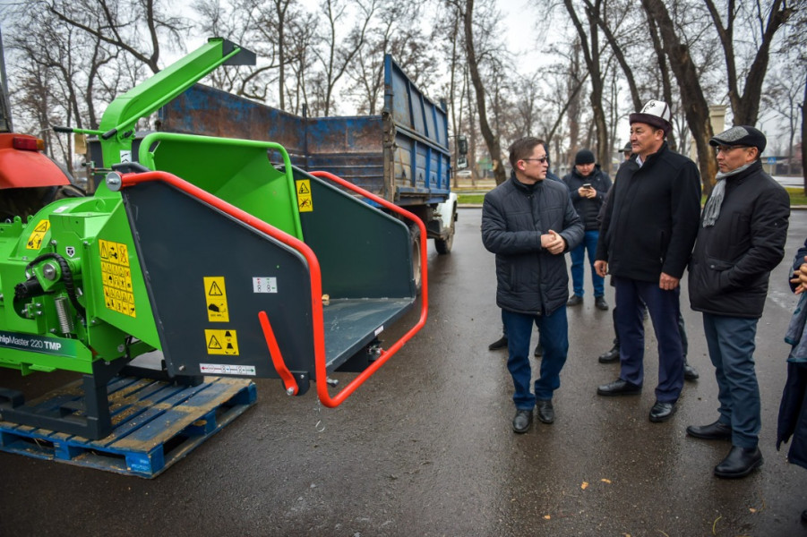 В парке на пресечении улиц Боталиева и Манаса с участием первого вице-мэра Бишкека Максатбека Сазыкулова состоялась презентация новой спецтехники муниципального предприятия «Бишкекзеленхоз».