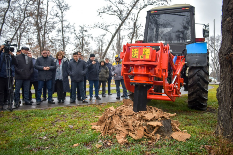 Для городской службы закуплено 2 комбинированные машины на базе МАЗ, 1 измельчитель веток, 1 экскаватор-погрузчик и 1 корчеватель пней.