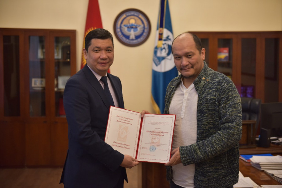 Почетной грамотой мэрии города Бишкека награжден дизайнер Нурбек Насыранбеков (креативное бюро I-media). Именно он является автором единого фирменного стиля новогоднего оформления столицы.