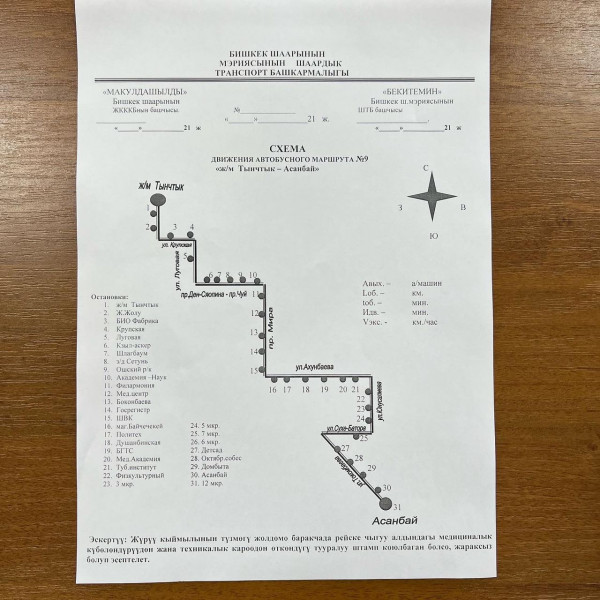 Маршрут будет следовать сообщением: «микрорайон Асанбай - жилмассив Тынчтык», с плановым выходом 15 единиц подвижного состава.