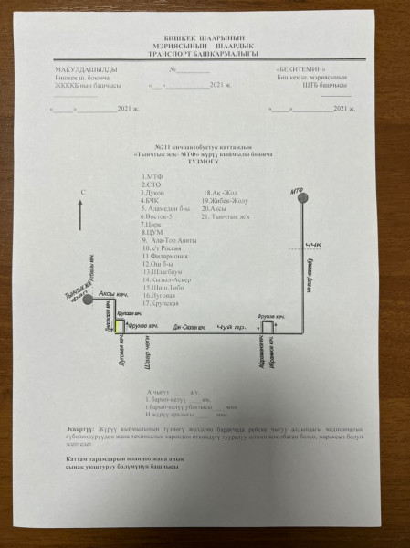 Также, частично изменена схема движения микроавтобусного маршрута №211 сообщением: «жилмассив Тынчтык – МТФ», а именно по улице Деповской до Фрунзе. Далее маршрут следует по той же схеме движения, с плановым выходом 22 единицы подвижного состава.