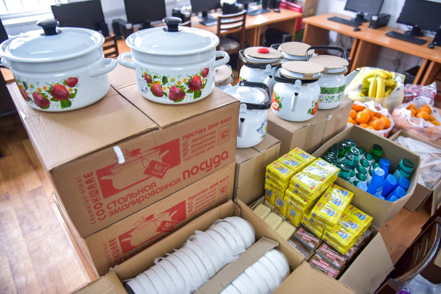 По запросу учреждения приобретены и переданы наборы кухонной посуды, мыломоющие средства, фрукты и сладости.