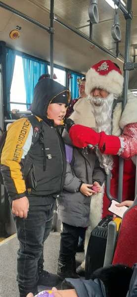В столичных автобусах Дед Мороз и Снегурочка дарят новогоднее настроение горожанам.