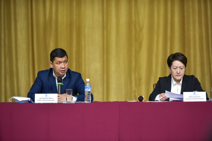 Заседание штаба прошло под председательством председателя Центральной комиссии по выборам и проведению референдумов КР Нуржан Шайлдабековой и мэра Бишкека Айбека Джунушалиева, с участием глав районов, руководителей служб и структурных подразделений мэрии столицы, МТУ.