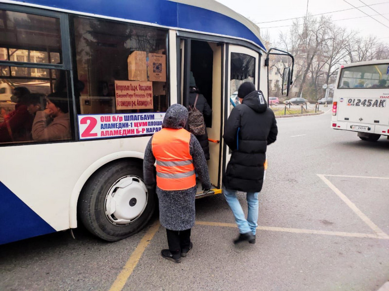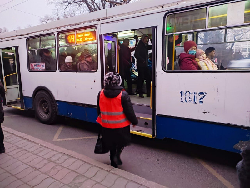 Специалисты Бишкекского троллейбусного управления проверяют как пассажиры и водители соблюдают масочный режим. Замечено, что число нарушителей режима возросло, с ними провели беседы о соблюдении санэпиднорм.