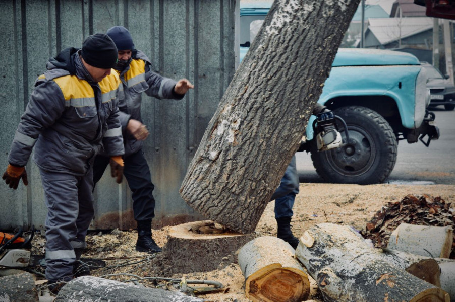 Муниципальное предприятие «Бишкекзеленхоз», чтобы обезопасить горожан и гостей столицы снесли аварийные деревья вдоль тротуара по улице Юнусалиева.
