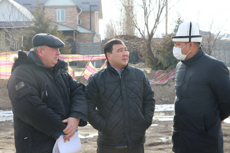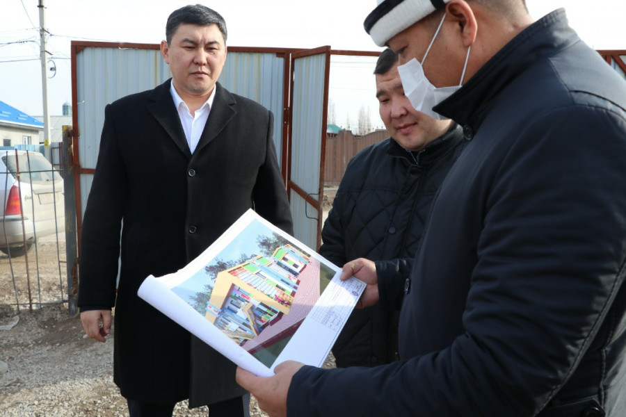 Глава Ленинского района Русланбек Тагаев ознакомились как ведутся строительные работы нового детского сада в жилом массиве "Арча-Бешик".