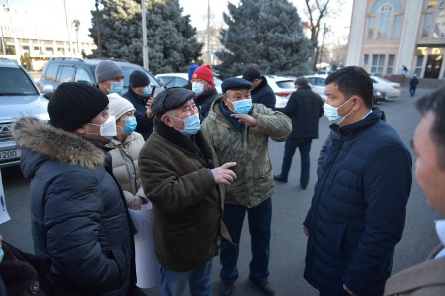 Утром возле здания мэрии города Бишкек жители одноименной улицы жилого массива "Арча-Бешик" вышли на митинг с требованием об узаконении земельных участков.