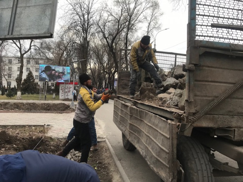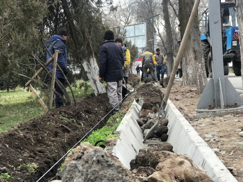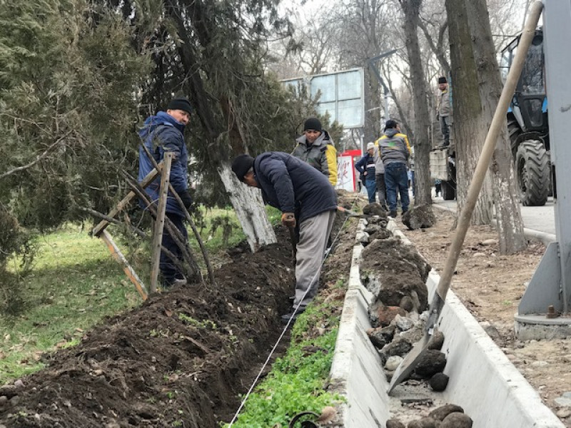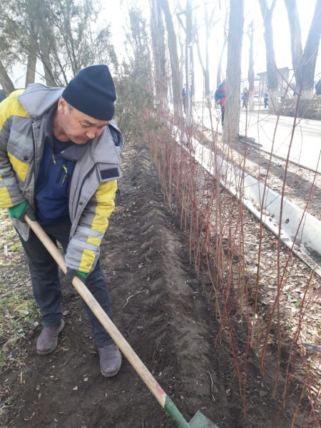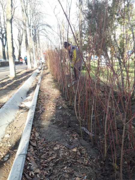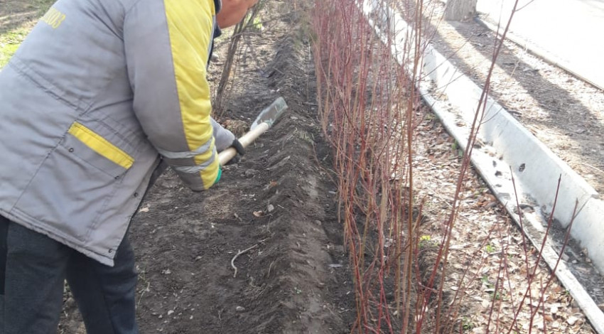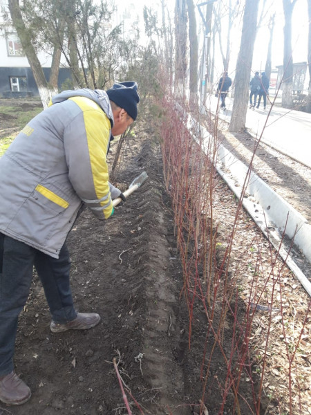 Муниципальное предприятие «Бишкекзеленхоз» высадили по периметру Кыргызского государственного технического университета имени И.Раззакова живую изгородь из свидины.