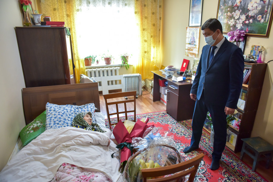 Сегодня, мэр города Бишкек Айбек Джунушалиев поздравил участницу Великой Отечественной Войны, блокадницу Кутанову Анну Алексеевну с днем рождения.