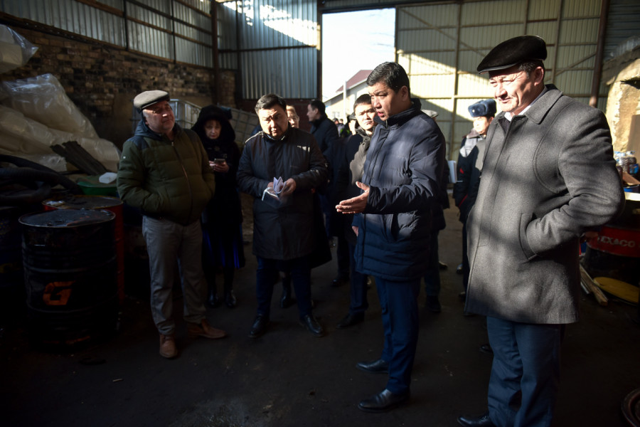 Мэр Бишкека Айбек Джунушалиев провёл выездное совещание на складе горюче-смазочных материалов, расположенном на пересечении улицы Тимирязева и проспекта Жибек-Жолу.