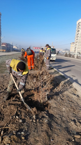 Прямо сейчас столичные озеленители проводят посадку можжевельников по улице Масалиева, ранее зимние посадки были завершены по улицам: Курманжан Датка, Ч. Валиханова, Логвиненко, Орозбекова, Гагарина, а также проспекты Чуй и им. Ч. Айтматова.