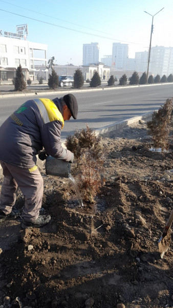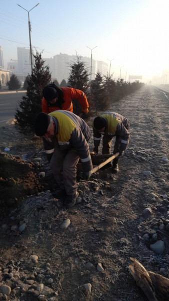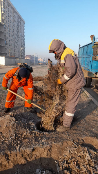 Муниципальное предприятие "Бишкекзеленхоз" продолжает зимний сезон посадок деревьев.