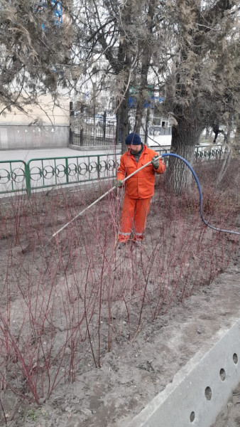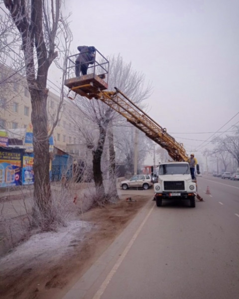 Ручная обрезка и очистка деревьев от порослей производится по улицам: Ауэзова, Жукеева-Пудовкина, 7-апреля, а санитарную обрезка на улицах : Наманганской, Скрябина, Лермонтова, Манаса, Анкара, Уметалиева.