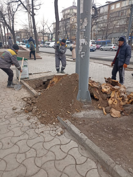 На пересечении улиц Абдрахманова-Московская , Чуй-Шопокова ведутся работы по удалению пней.