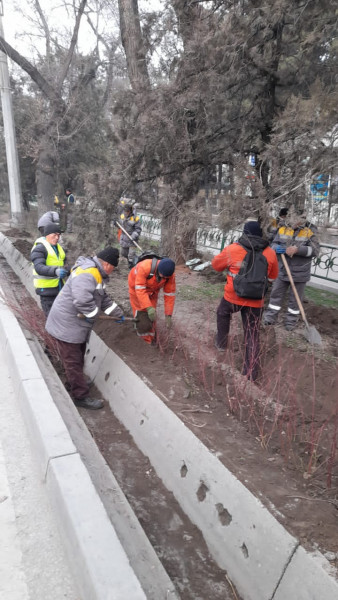 Также продолжается подготовка траншеи и посадка живой изгороди по проспекту Чуй, Абдрахманова, Гоголя, Суюмбаева.