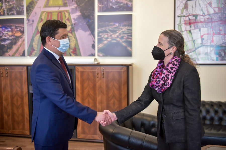 В муниципалитете состоялась встреча мэра столицы Айбека Джунушалиева с временной поверенной в делах США в КР Сонатой Н. Коултер.