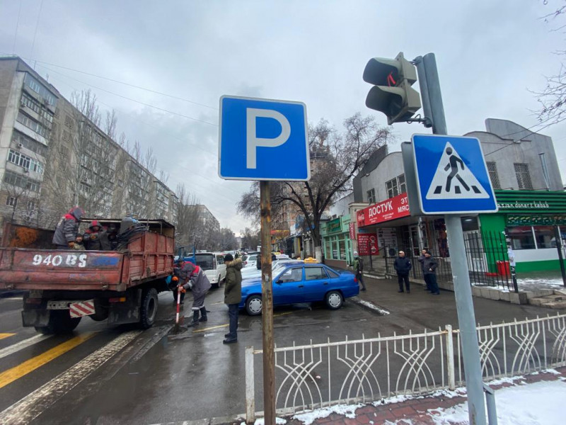 Так, по улице Усенбаева во дворе центра семейной медицины №10 демонтированы ограничители парковки. Возле рынка Ак-Эмир, расположенном на пересечении улиц Московская и Шопокова теперь нет таблички о платной парковке.