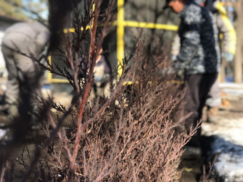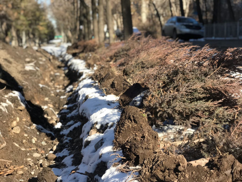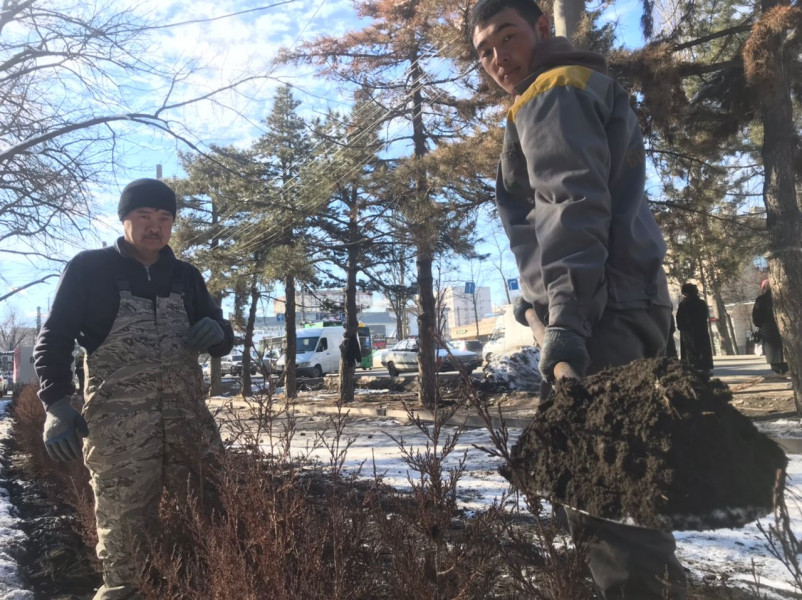 В рамках объявленной акции по улице Юнусалиева мастерами-озеленителями бережно высаживаются ещё 200 можжевельников. Морозоустойчивое и засухоустойчивое растение в летнее время зеленое, а зимой с желтым оттенком. Внешне можжевельник напоминает маленькую пушистую елочку.