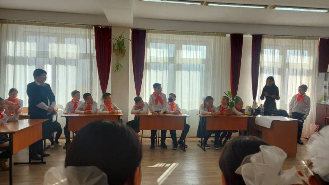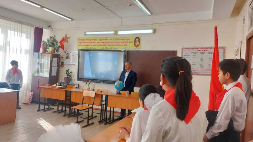 Первый летчик–кругосветчик Центральной Азии, экс-депутат Бишкекского городского кенеша Союзбек Салиев провел урок мужества для учащихся 6-го класса школы-гимназии №72 Ленинского района, поделился с учащимися формулой успеха.