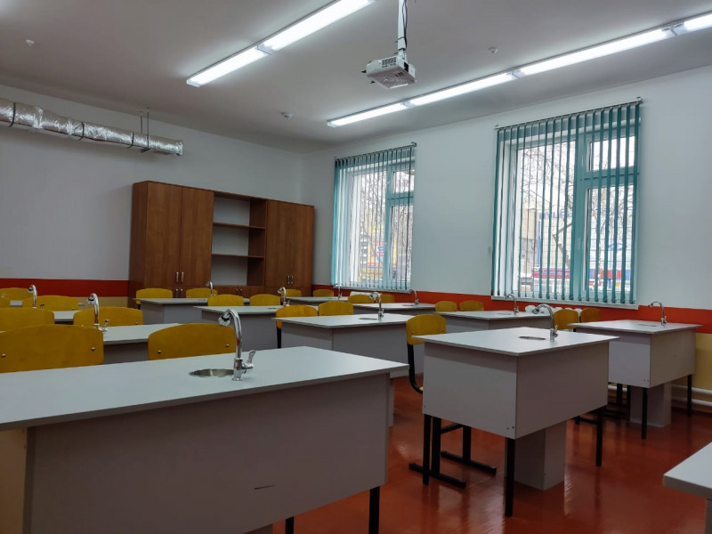 Новая пристройка, рассчитанная на 375 ученических мест, состоит из 14 учебных классов, столовой, актового и спортивного залов. Общая площадь 2297,10 м2.