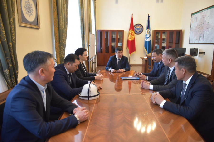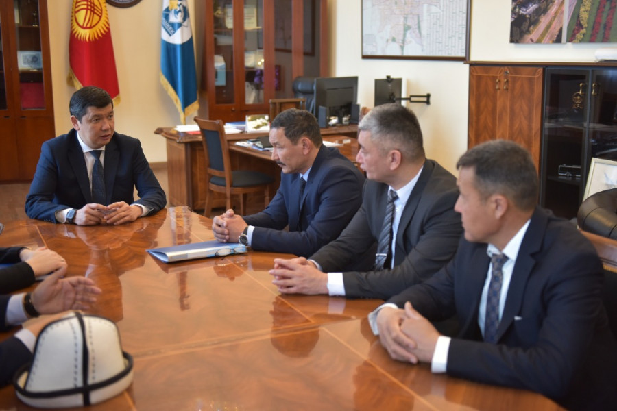 Мэр города Бишкек Айбек Джунушалиев встретился делегацией города Баткен в составе мэра Имамназара Бурканова, председателя Баткенского городского кенеша Алтынбека Аширова и директора департамента муниципального имущества при мэрии г. Баткен Акрамали Акматова.