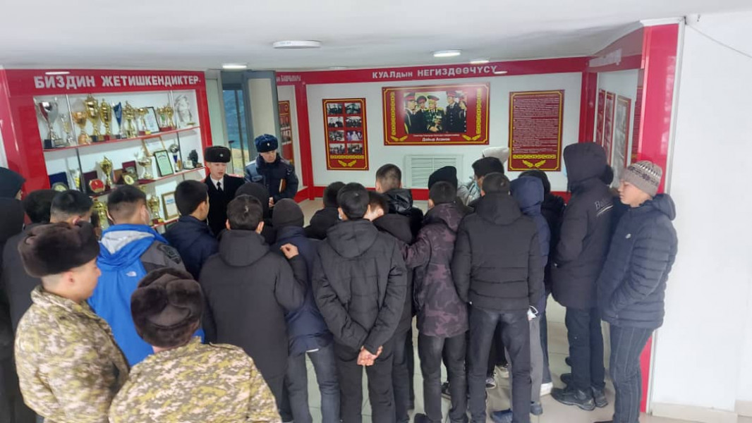 Цель встречи – расширить кругозор учащихся, воспитать чувство долга, ответственности, патриотизма к своей стране. Всего Кыргызский национальный лицей имени героя генерал-майора Даира Асанова посетили 300 учеников.