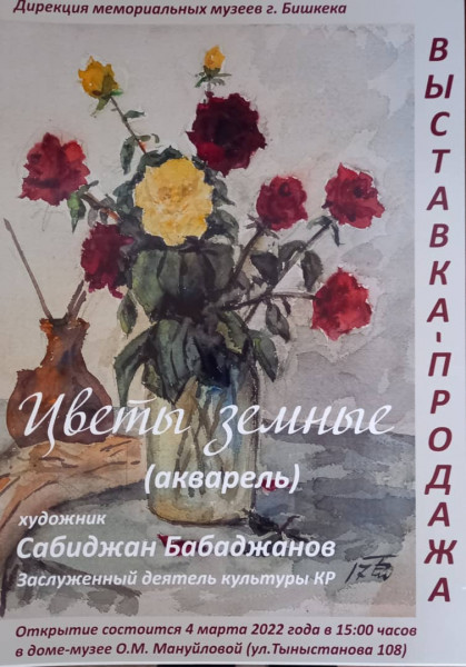 4 марта в 15:00 часов в Доме-музее О. Мануйловой откроется персональная выставка Заслуженного деятеля культуры КР, художника Сабиджана Бабаджанова «Цветы земные».