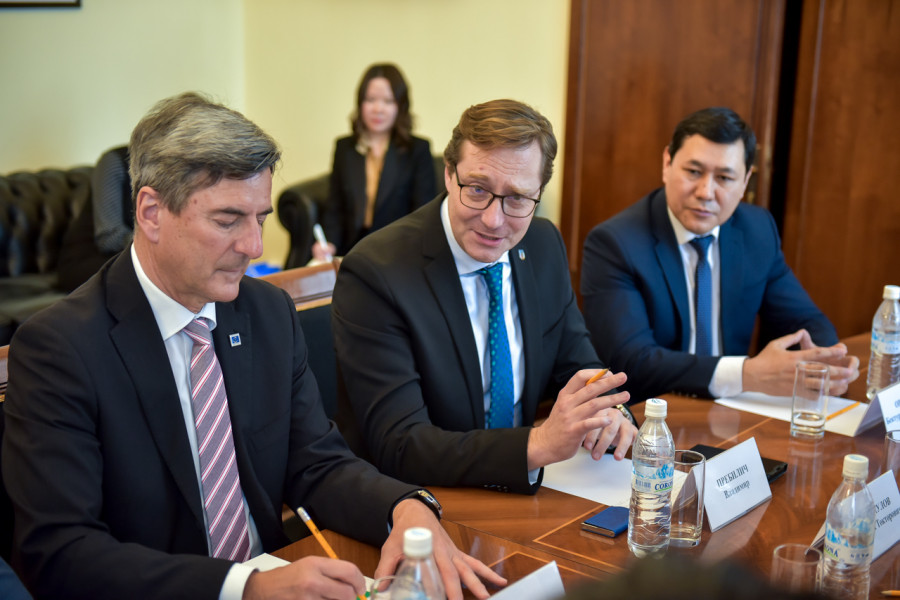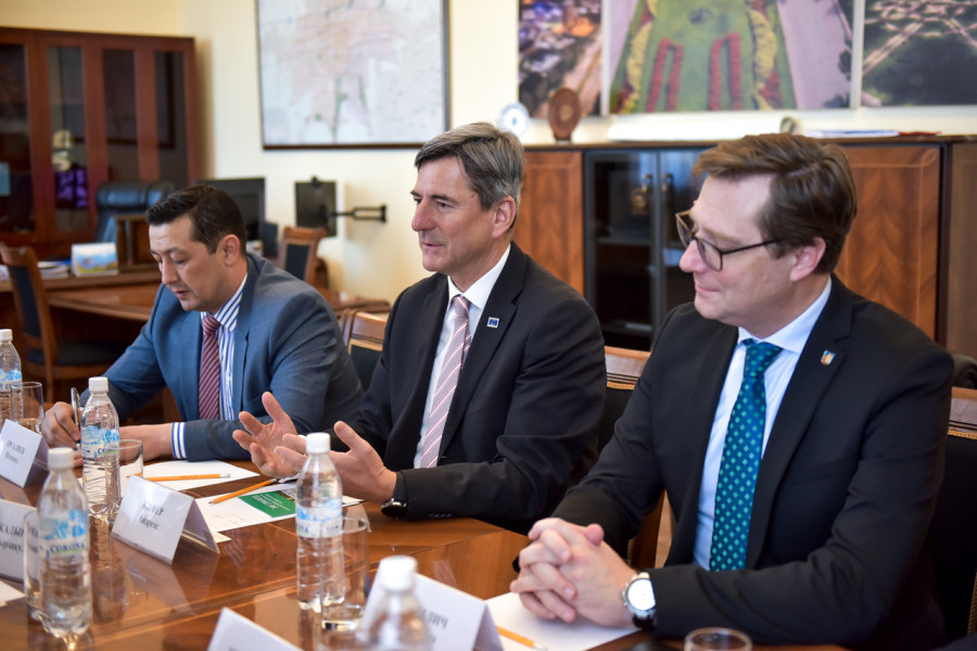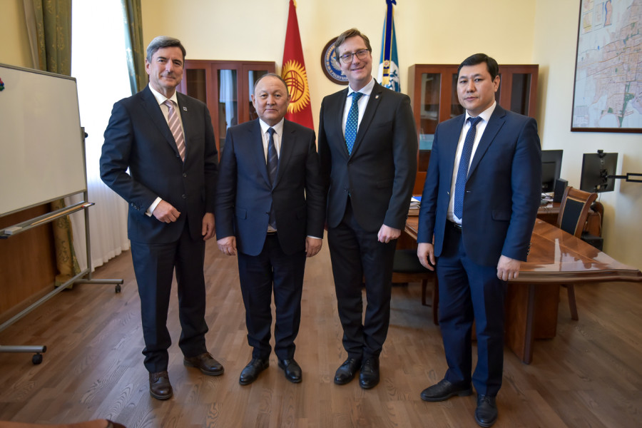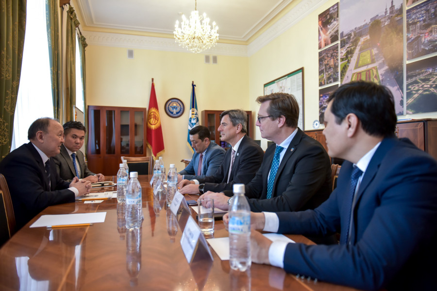 Мэр Бишкека Эмилбек Абдыкадыров встретился с делегацией Конгресса местных и региональных властей Совета Европы во главе с его генеральным секретарём Андреас Кифер.